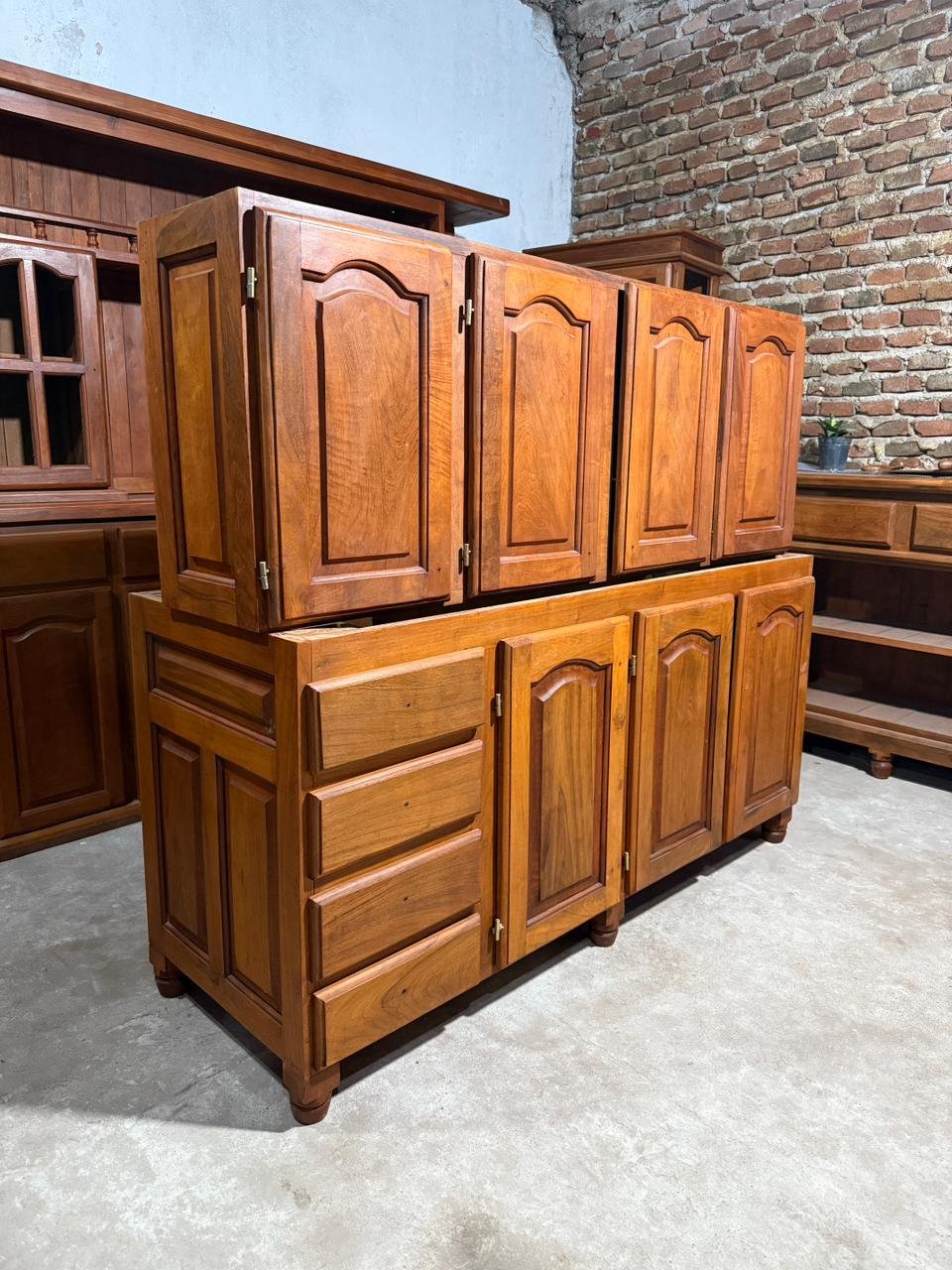Además, el mueble incluye sus respectivos tiradores de algarrobo (manijas), manteniendo una estética totalmente en madera.