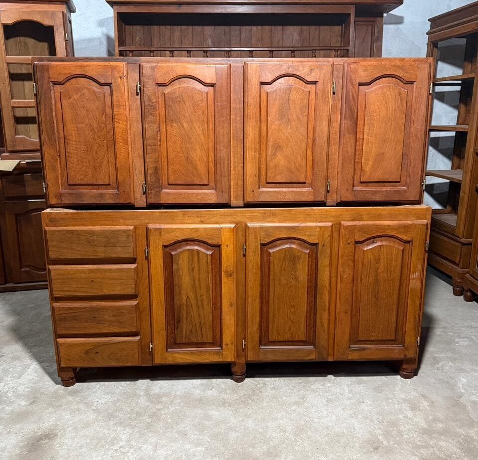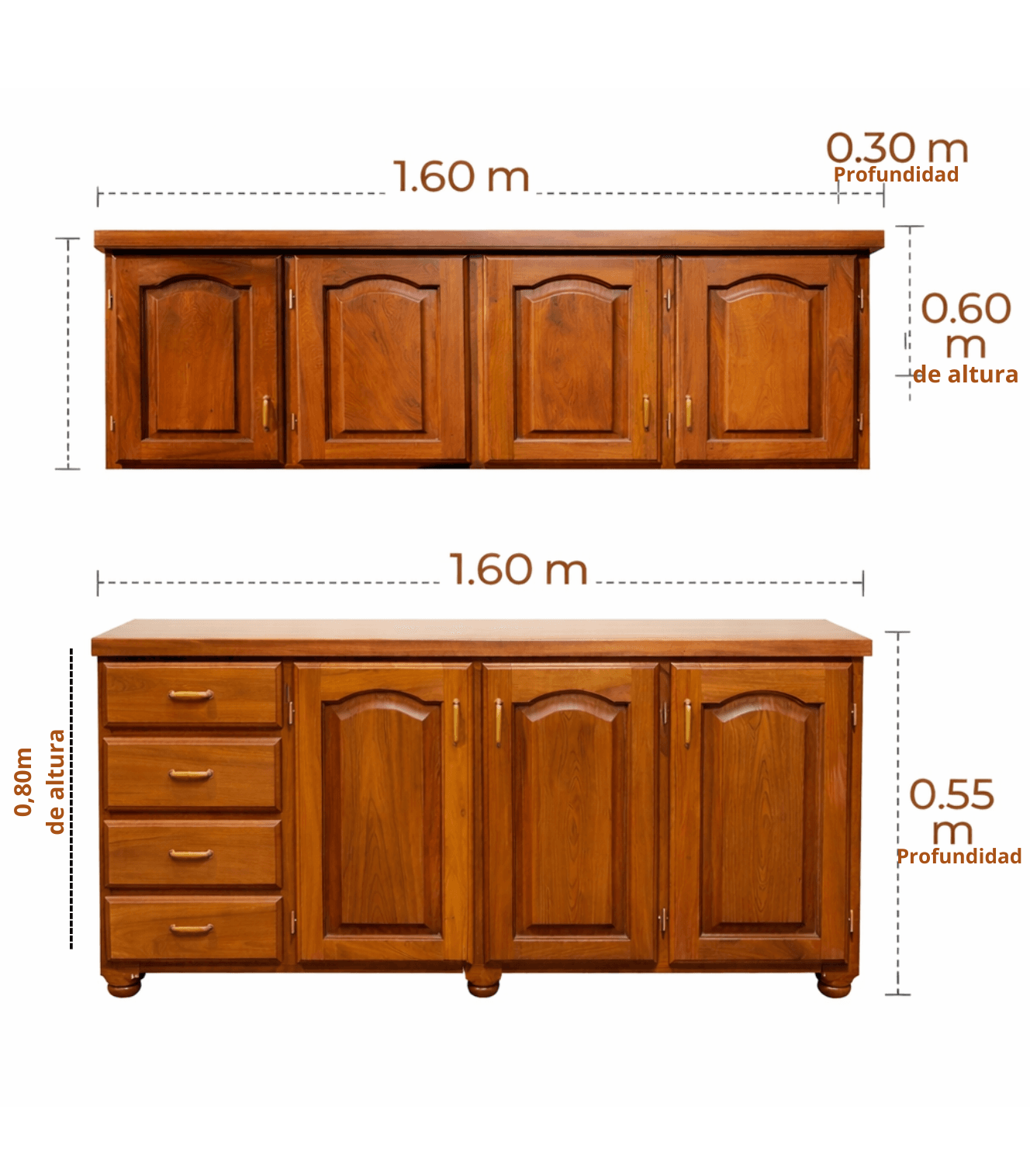 Juego de cocina fabricado en madera de algarrobo, reconocido por su gran resistencia, peso y durabilidad. Un conjunto ideal para quienes buscan un mueble sólido, funcional y con una estética clásica que combina perfectamente en distintos estilos de cocina.