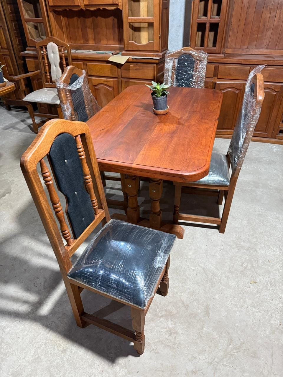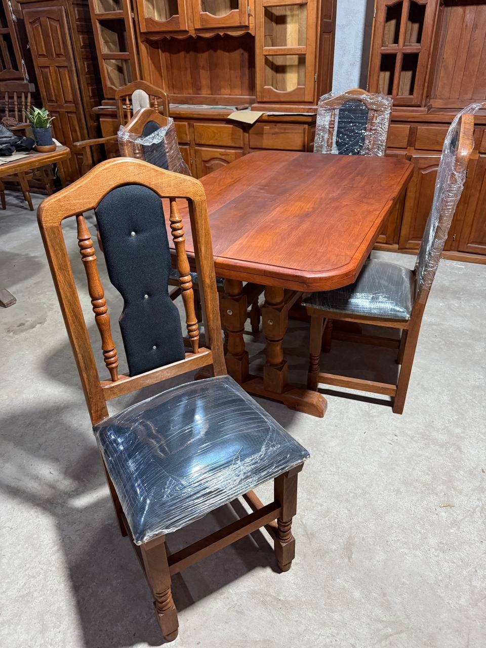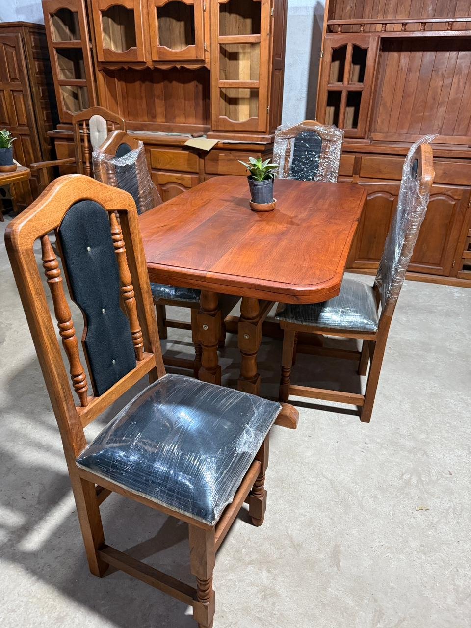 Juego de Comedor de Algarrobo – Mesa 1.20 m con 4 Sillas Tapizadas