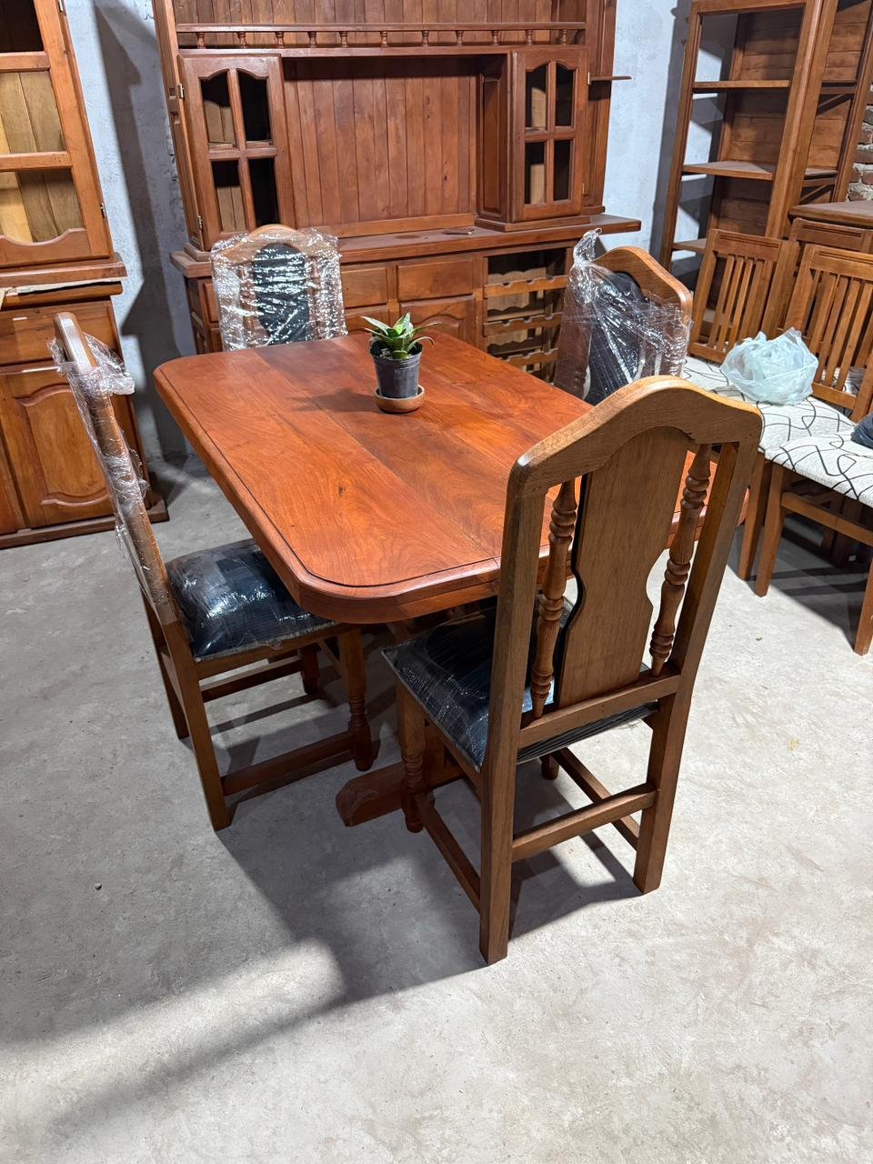 Juego de comedor fabricado en madera maciza de algarrobo, ideal para espacios cómodos y funcionales. Su tamaño es perfecto para cocinas o comedores donde se busca aprovechar bien el espacio