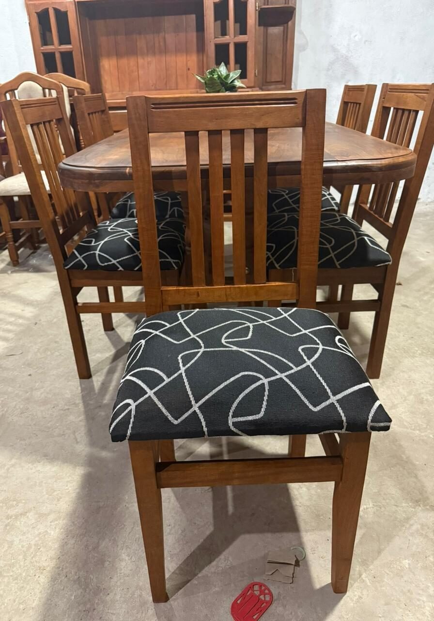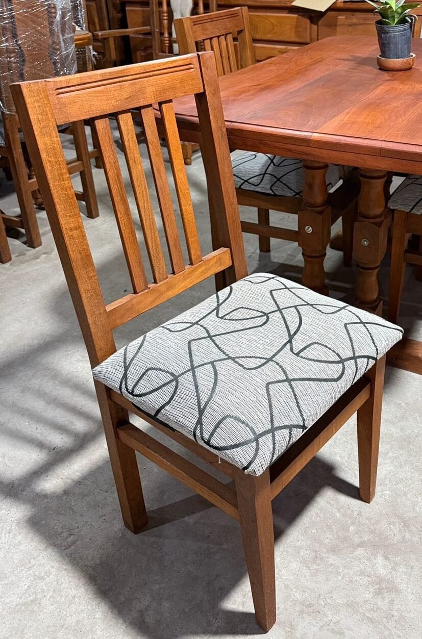 Conjunto de 6 sillas modelo moderno, fabricadas en madera maciza de algarrobo, pensadas para quienes buscan combinar diseño actual, comodidad y gran resistencia.